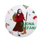 This Befana appears to be heir at law of a certain pagan goddess called Strenia, who presided over the new-year’s gifts, ‘Strenae,’ from which, indeed, she derived her name.[4] Her presents were of the same description as those of the Befana—figs, dates, and honey.[8] ” https://en.wikipedia.org/wiki/Befana